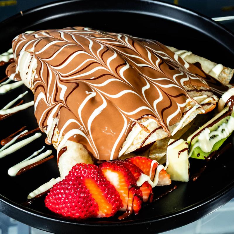 Trio of Belgian Chocolate | Pistachio Sauce | Nutella | Lotus | Reese's | Oreo | Mixed Nuts | Pistachio +$2.00 | Kinder +$2.00 | Nothing Else | Caramel | Strawberry Sauce